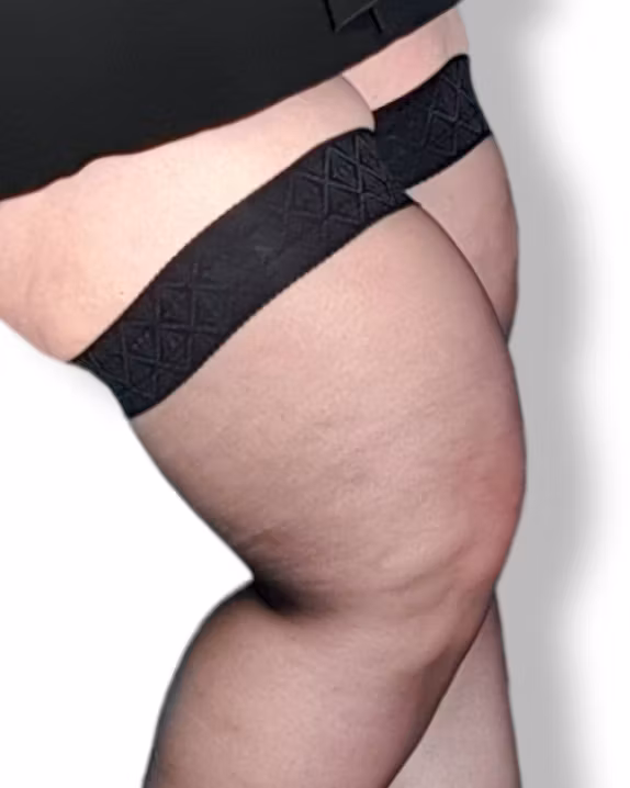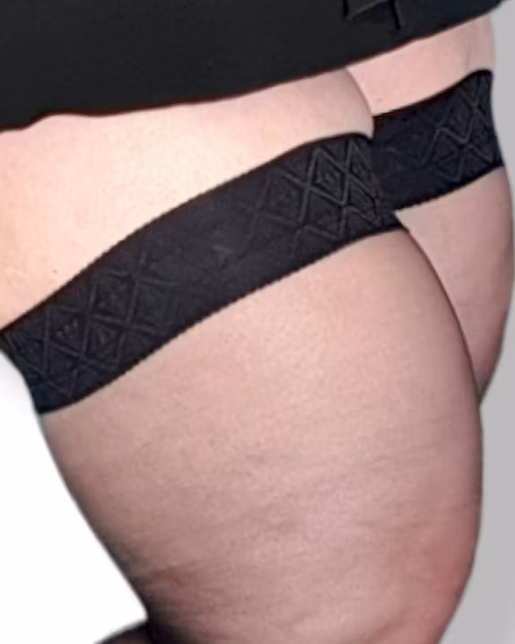 Mät ditt lår där du vill att din strumpa ska sluta, titta på måttguiden vilken storlek som passar dig bäst. Då måtten kan skilja på dina lår ska du mäta båda dina lår. En Stay Up som är för liten i omkrets kommer att rulla ner.