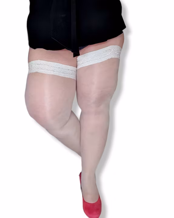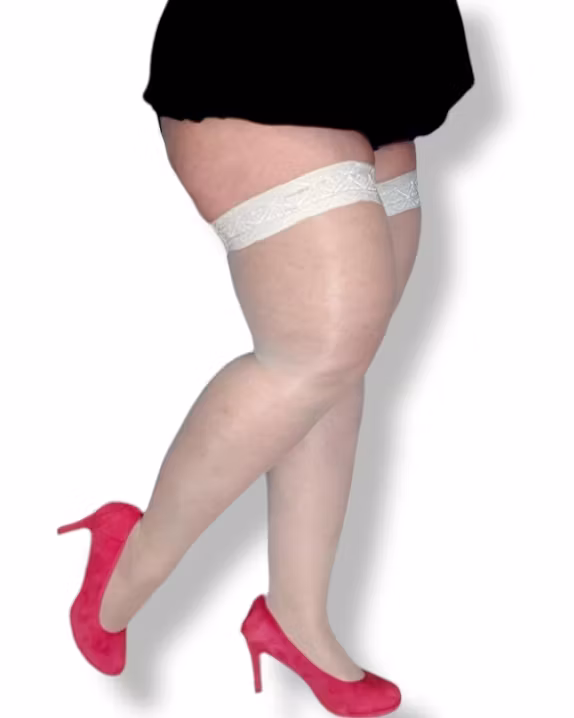Färgen är vit nyans på nylonstrumpan och lårbandet.