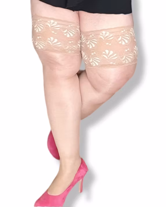 Mät ditt lår där du vill att din strumpa ska sluta, titta på måttguiden vilken storlek som passar dig bäst. Då måtten kan skilja på dina lår ska du mäta båda dina lår. En Stay Up som är för liten i omkrets kommer att rulla ner.