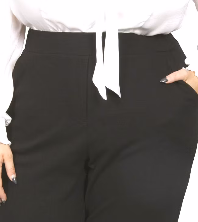Skönare byxa får man leta efter. Denna byxa ger dig en sofistikerad och elegant look. Byxan är mjuk tack vare det strechiga tyget. Du slipper den jobbiga och obekväma knäppningen som oftast finns på finbyxor, denna byxa är utrustad med elastiskt midjeband och fickor. Faikade fickor på baken.