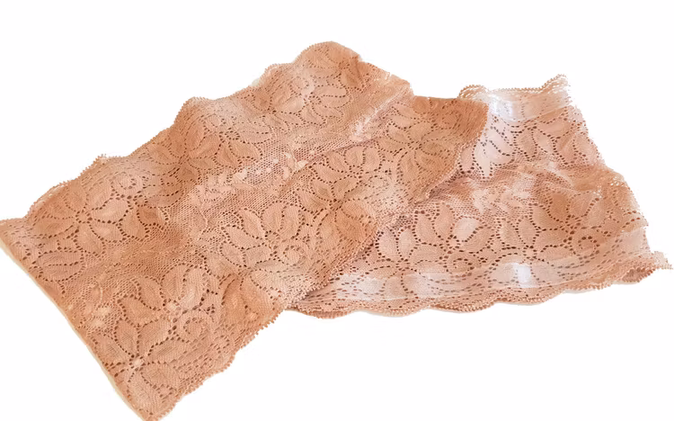 Den 15 cm breda spetsen har 2 breda silikonband , ett upptill på bandet och ett nertill på bandet som gör att spetsbandet sitter säkert på ditt ben.