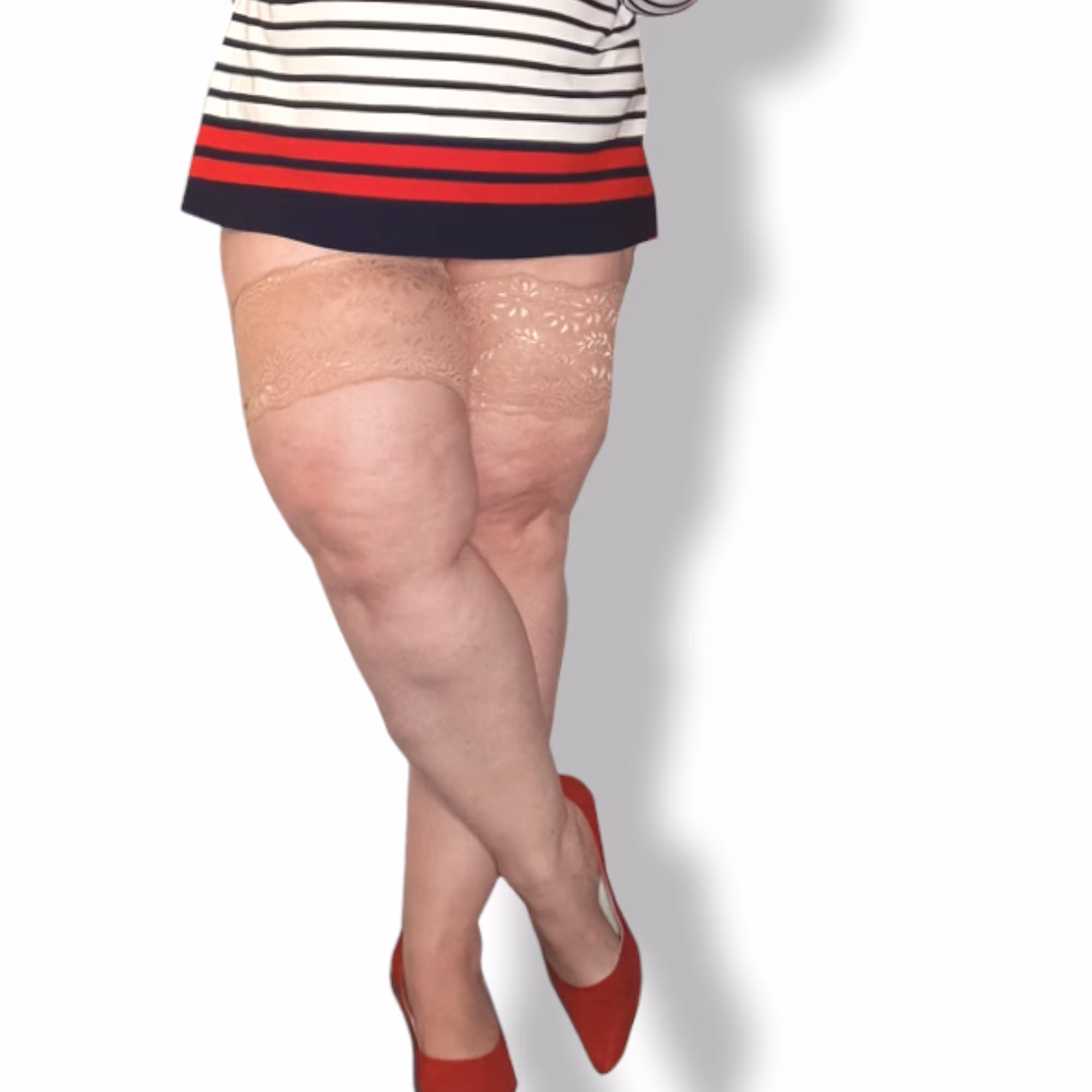 Det är superviktigt att du mäter dina lår korrekt. Om du inte gör det och du köper fel storlek kommer de att rulla sig (för liten storlek) eller sitta för löst och åker ner (för stor storlek)