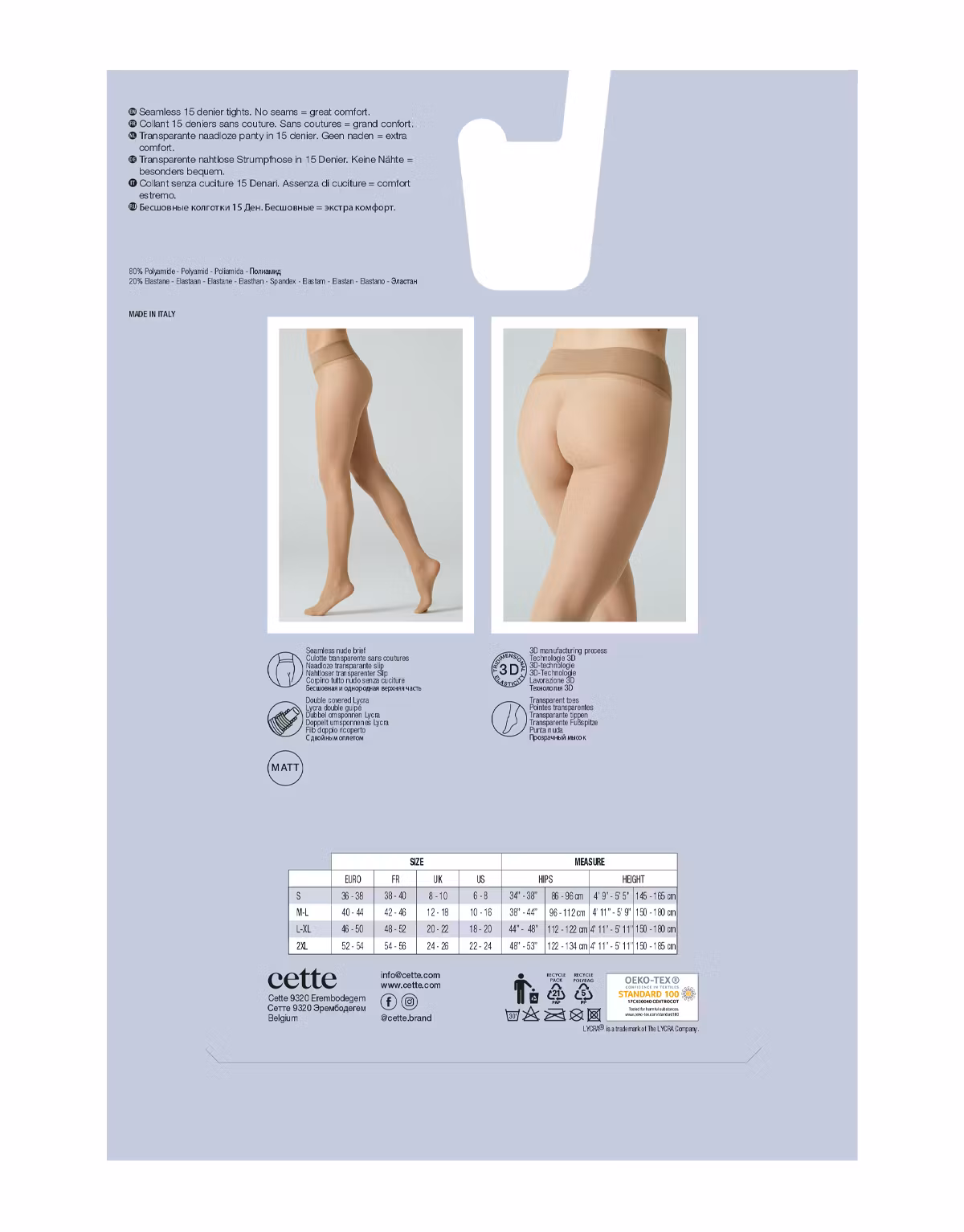 Strumpbyxan Seamless 15 den, är en tunn matt strumpbyxa i 15 den som är helt sömlös med en bred mjuk mudd.