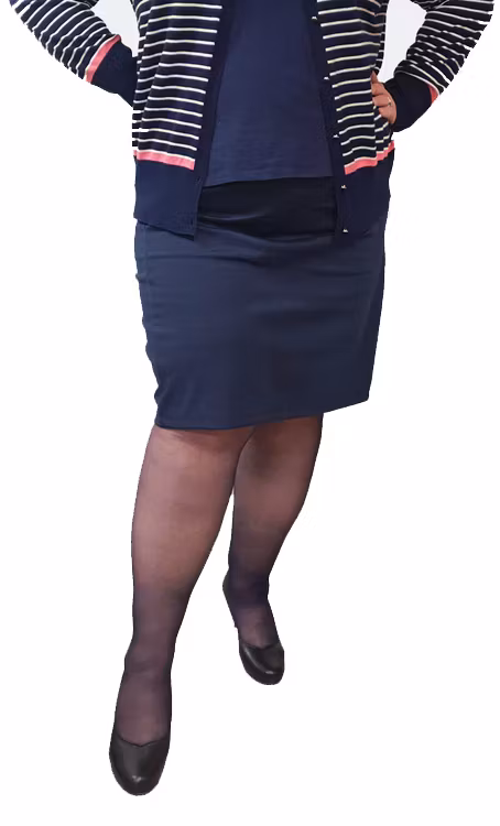 2 Xl är behaglig och rymlig både i benlängd och över magen på modellen som har följande mått.